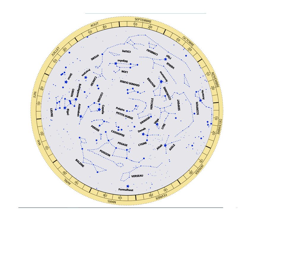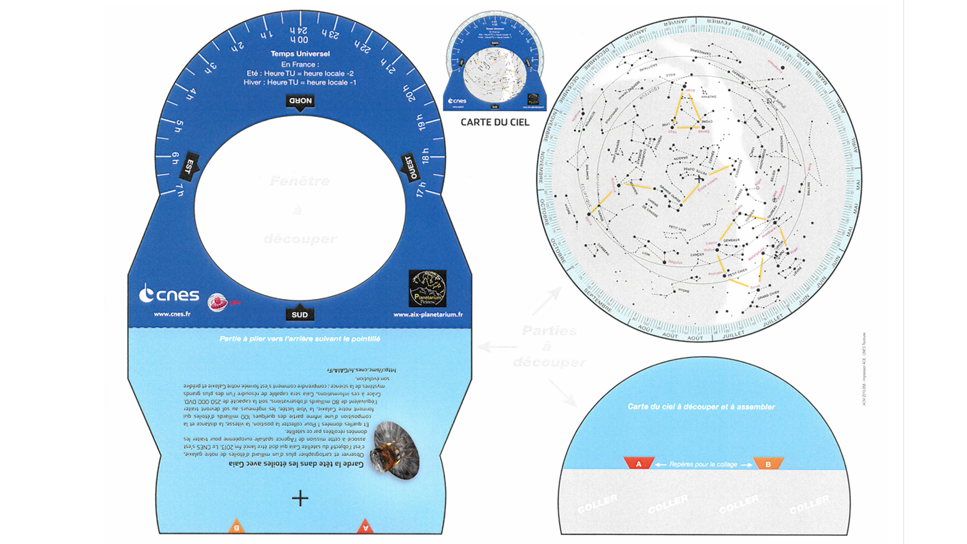 Carte du ciel à découper et à placer dans le support de droite
