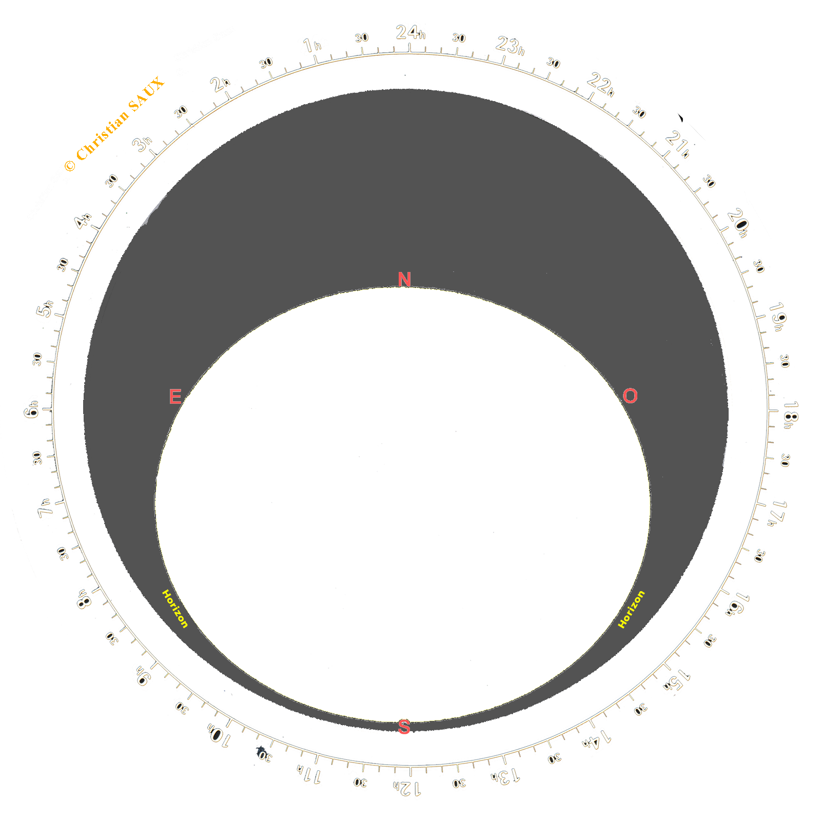 Clic sur Droite ou Gauche pour faire tourner la carte de 1° soit 4 minutes de temps dans un sens ou dans l'autre avec la touche 'R' pour rotation.