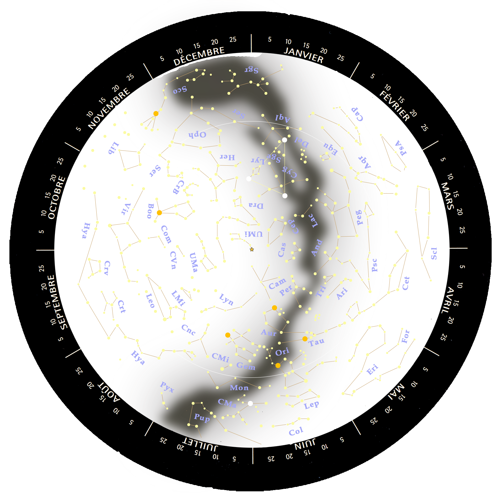 Clic sur le nom abrégé pour afficher la carte de la constellation - © christian Saux
