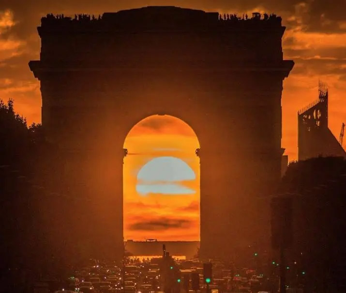 Le Soleil "passe sous" l'Arc de Triomphe à 8h 50 le 07/02/26