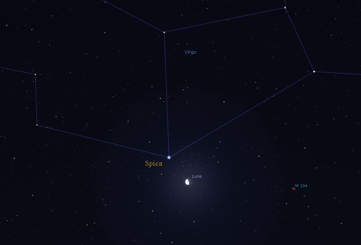 Rapprochement Lune/Spica (alpha de la Vierge) à l'aube du 07/02.