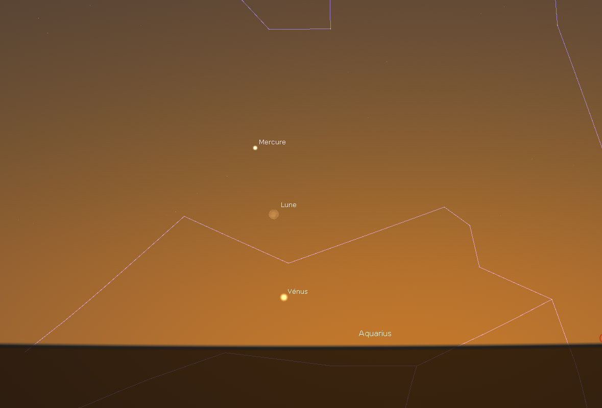 Croissant de Lune entre Mercure et Vénus le 18/02 au crépuscule.