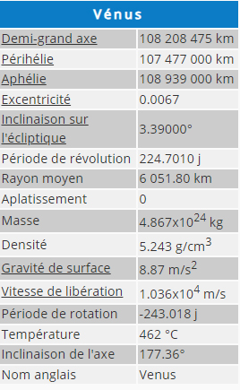 Vénus est le 3eme objet naturel le plus brillant du ciel. Il est possible, à certaines périodes de l'année, d'apercevoir la planète en plein jour. Comme Vénus est sur une orbite plus proche du Soleil que celle de la Terre, elle ne semble jamais loin du Soleil vue depuis la Terre. Son élongation atteint un maximum de 47,8°. On peut observer, comme avec la Lune, des phases de la planète selon leur moment d'apparition dans l'année. Leur observation a été faite pour la première fois au début du XXIIe siècle par Galilée à l'aide de sa lunette astronomique. |