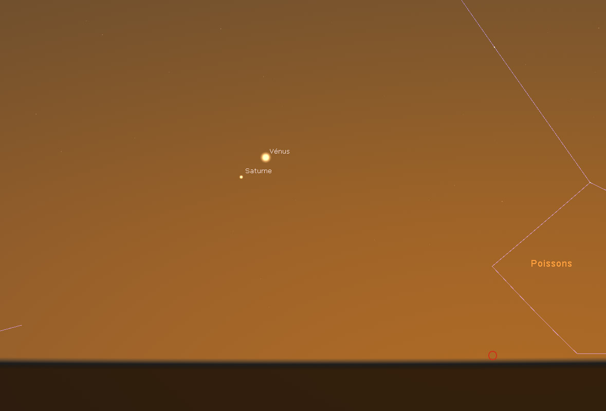 Au crépuscule le 8, Vénus et Saturne