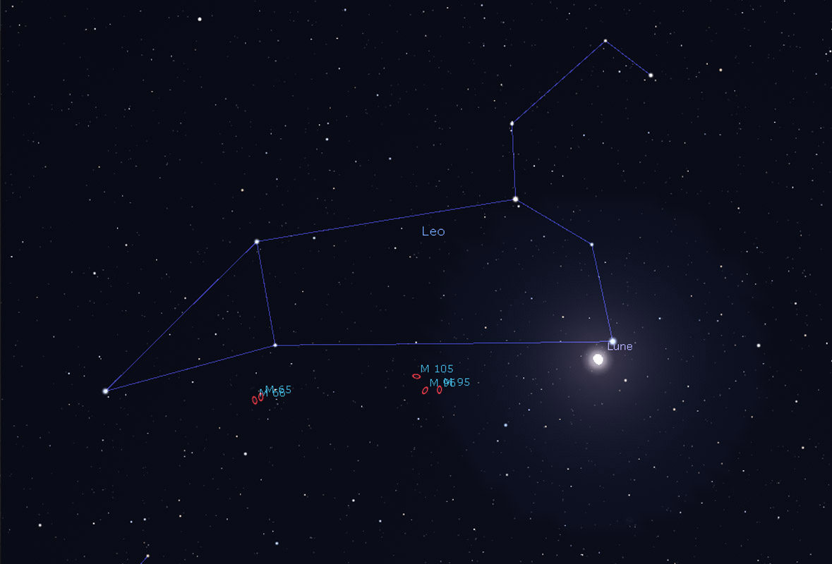 Le soir du 29 : La Lune proche de Régulus(α du Lion).