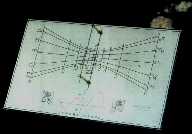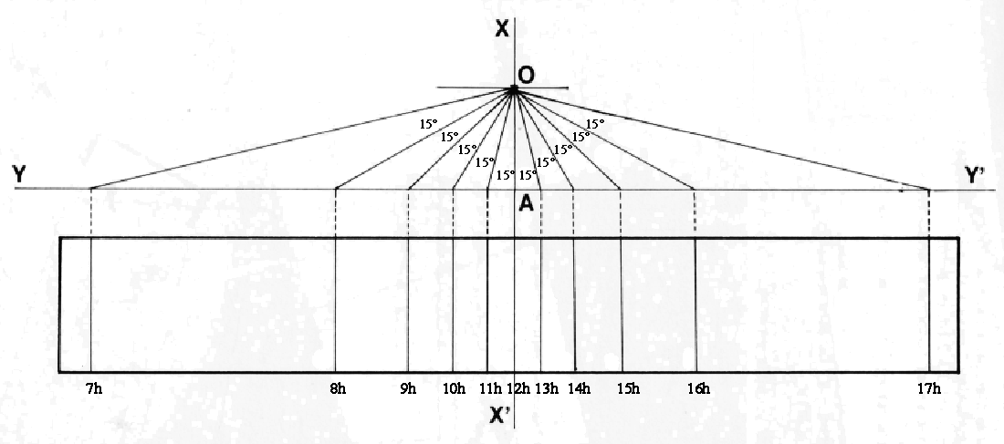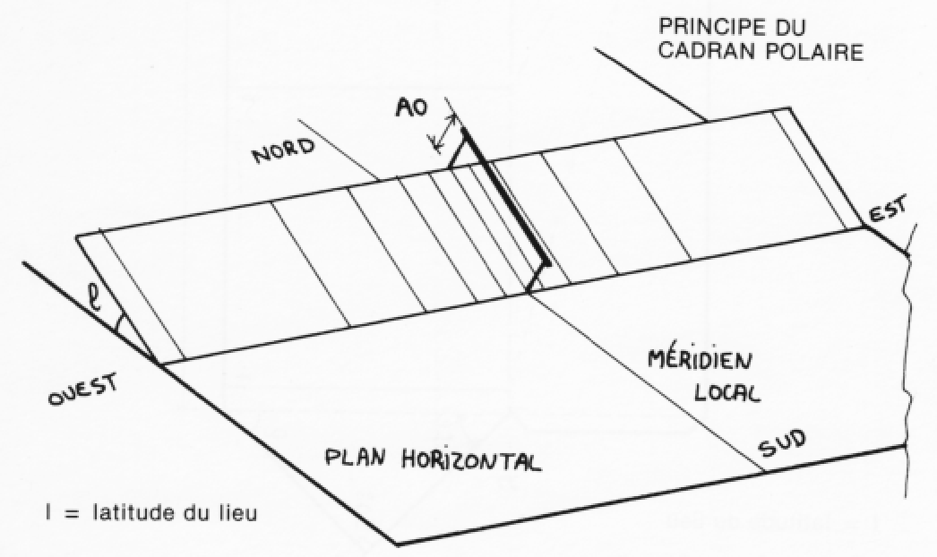 La table du cadran est perpendiculaire au méridien et inclinée selon un angle égal à la latitude.