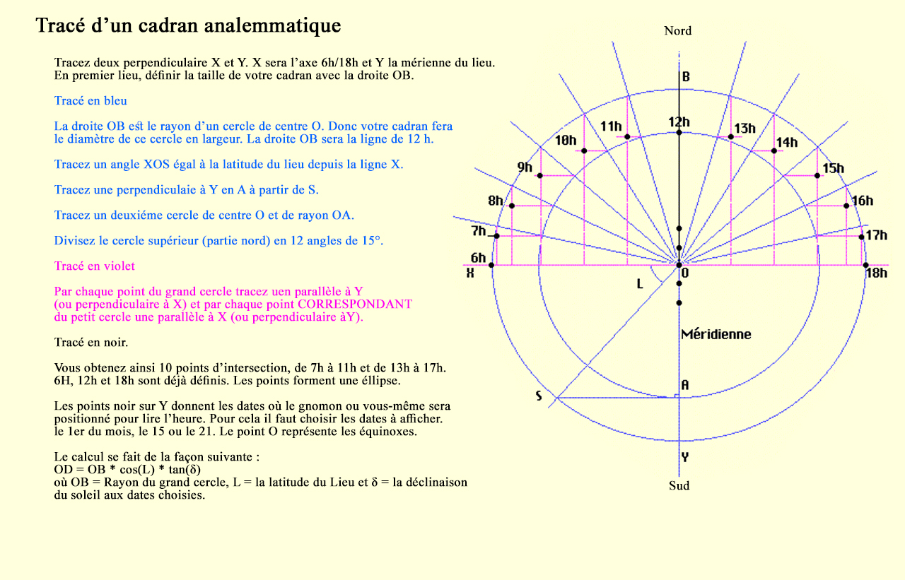 La construction d'un cadran analemmatique se fait soit par le calcul soit par le dessin géométrique.
